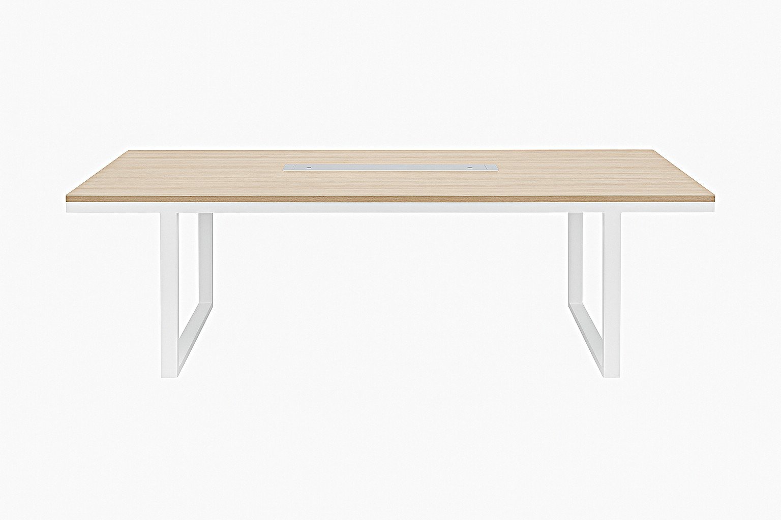 Επαγγελματικό γραφείο συνεδριάσεων, κατασκευασμένο από ανθεκτική μελαμίνη σε απόχρωση οξιάς και μεταλλικά πόδια σε λευκή απόχρωση.